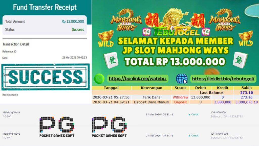 BUKTI JACKPOT SLOT MAHJONG WAYS Rp 13.000.000- LUNAS