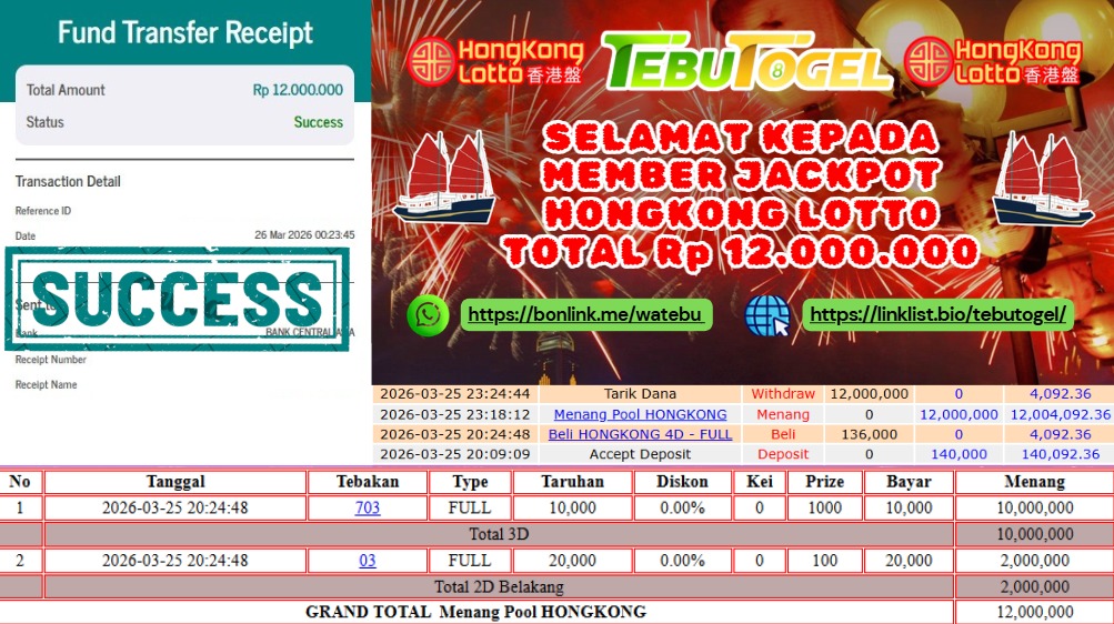 Masih ragu dengan TebuTogel bos ? Dimana bandar togel online sekarang yang terpercaya seperti TebuTogel ? Bandar yang mengirimkan kemenangan member tanpa bertele – tele. Jadi…. tidak perlu khawatir pada situs TebuTogel karena kemenangan anda berapapun akan dibayarkan hingga lunas kepada pemenang.
