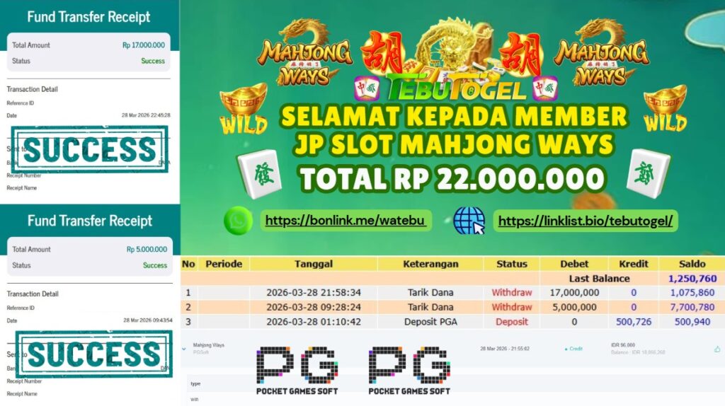 Selamat kepada User id : CHAVA** telah berhasil mendapatkan kemenangan besar pada permainan SLOT MAJONG WAYS dengan kemenangan sebesar … Baca selengkapnya...