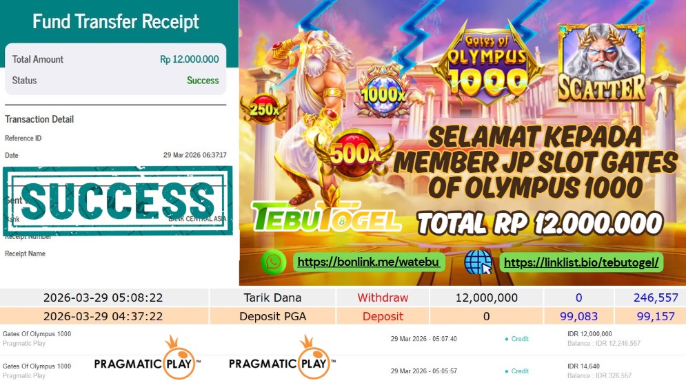 Selamat kepada User id : AKARI** telah berhasil mendapatkan kemenangan besar pada permainan SLOT GATES OF OLYMPUS 1000 dengan … Baca selengkapnya...