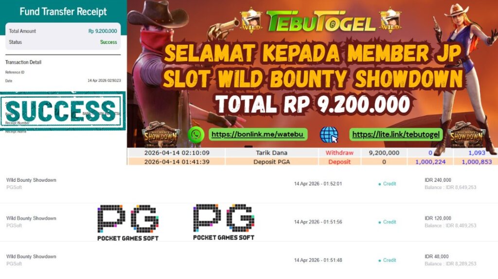 BUKTI JACKPOT SLOT WILD BOUNTY SHOWDOWN Rp 9.200.000- LUNAS