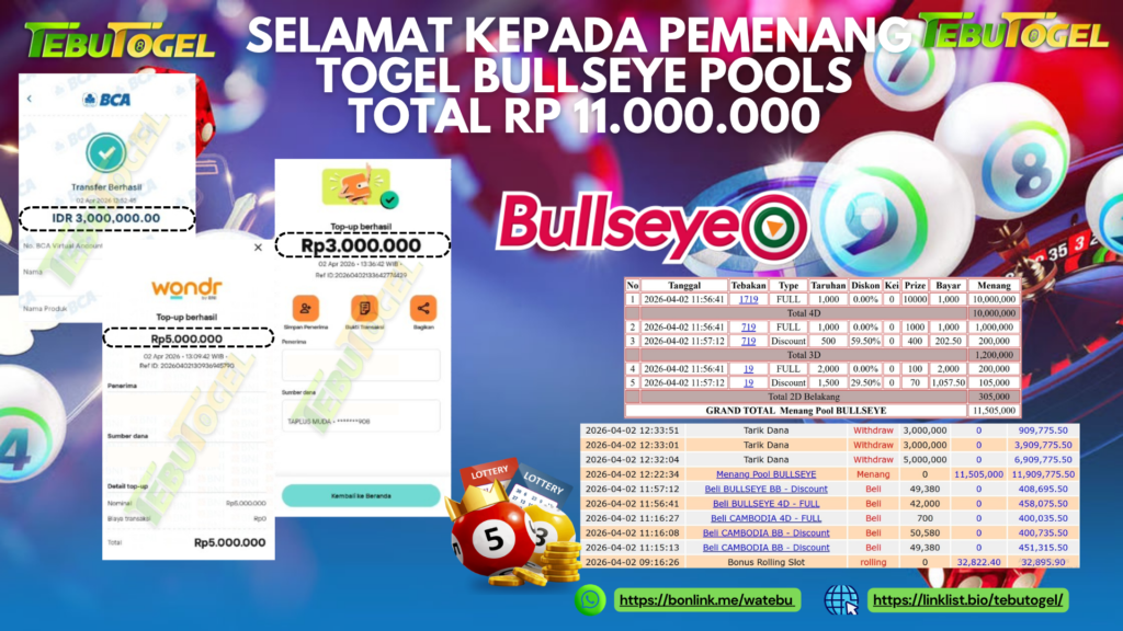 Selamat kepada User id : ZAI** telah berhasil mendapatkan kemenangan besar pada permainan TOGEL BULLSEYE dengan kemenangan sebesar Rp … Baca selengkapnya...