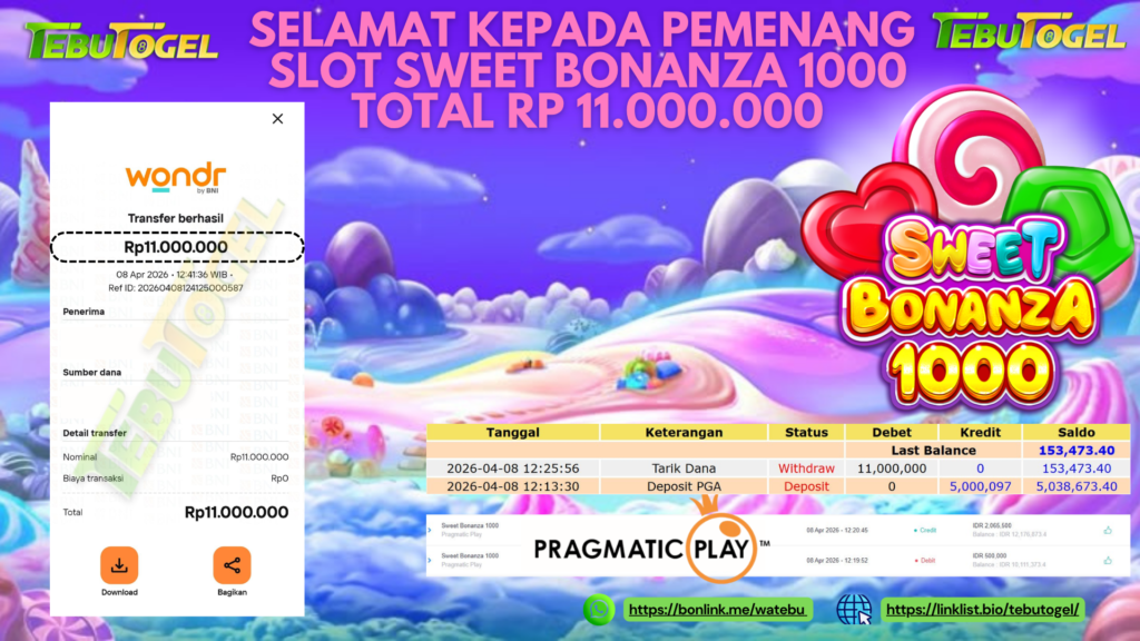 Selamat kepada User id : JAMI** telah berhasil mendapatkan kemenangan besar pada permainan SLOT SWEET BONANZA 1000 dengan kemenangan sebesar … Baca selengkapnya...