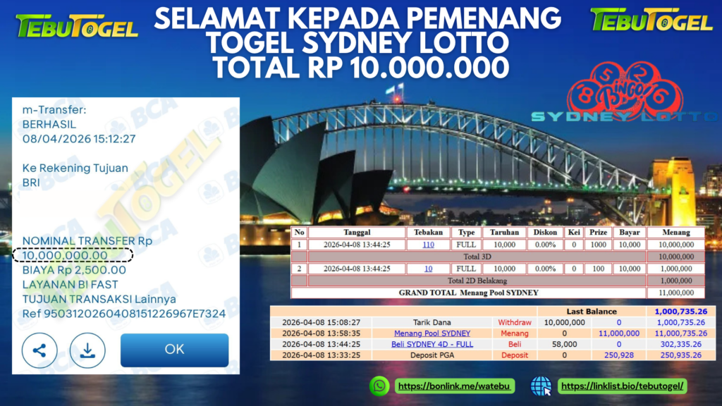 Selamat kepada User id : YON** telah berhasil mendapatkan kemenangan besar pada permainan TOGEL SYDNEY LOTTO dengan kemenangan sebesar Rp … Baca selengkapnya...