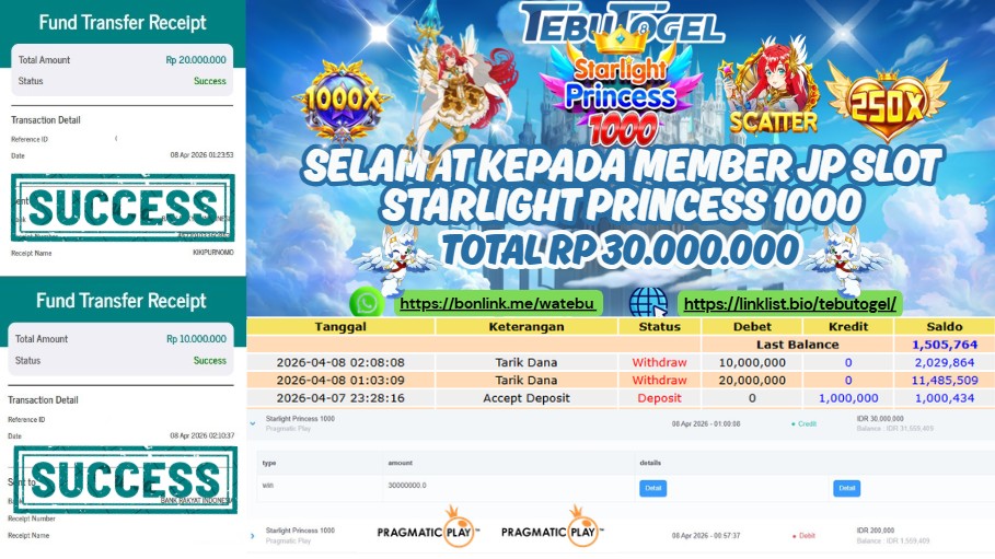 Selamat kepada User id : TATA** telah berhasil mendapatkan kemenangan besar pada permainan SLOT STARLIGHT PRINCESS 1000 dengan kemenangan … Baca selengkapnya...