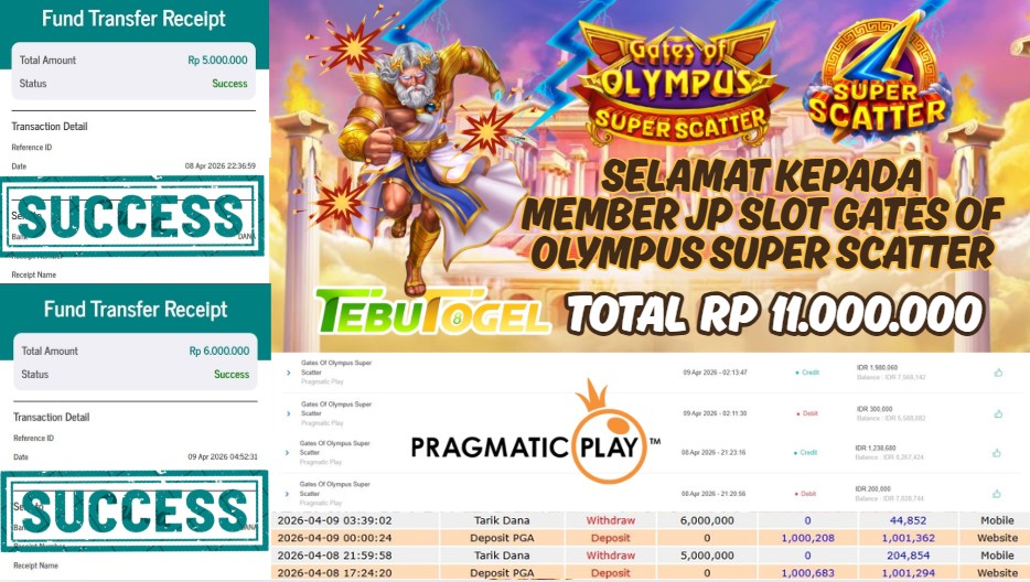 Selamat kepada User id : JUMIL** telah berhasil mendapatkan kemenangan besar pada permainan SLOT GATES OF OLYMPUS SUPER SCATTER dengan … Baca selengkapnya...
