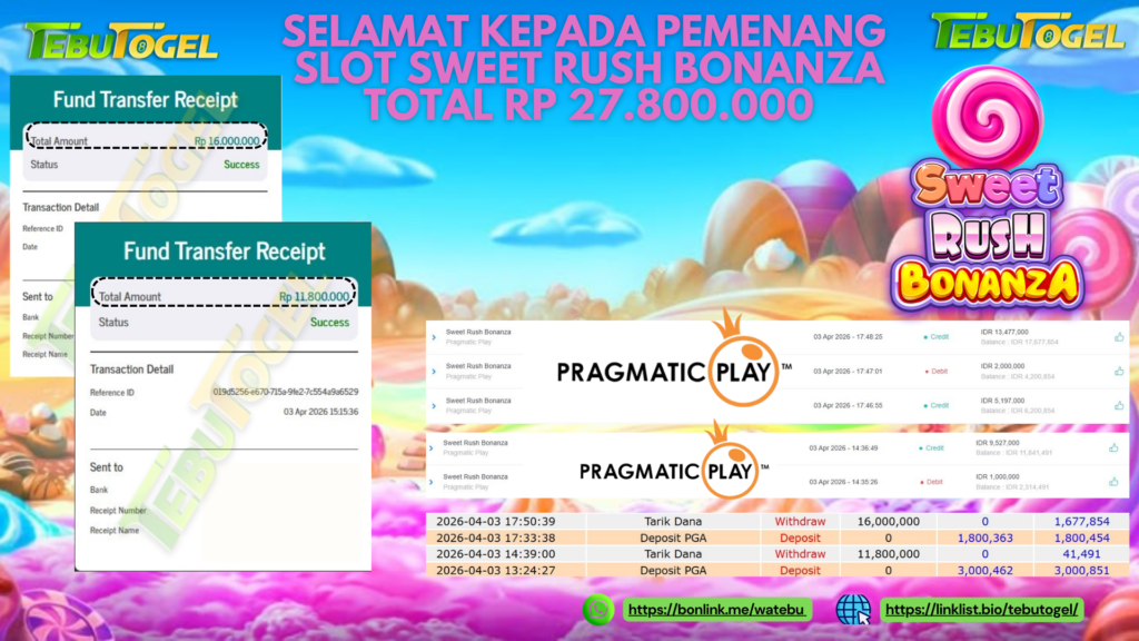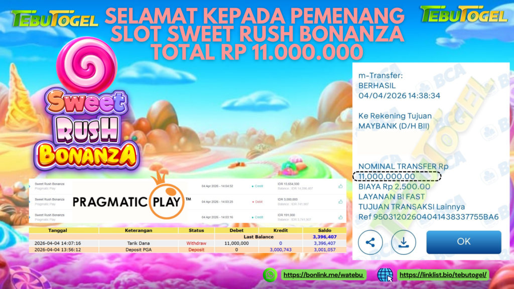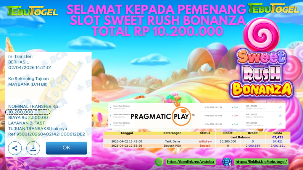 BUKTI JACKPOT SLOT SWEET RUSH BONANZA Rp 24.202.000- LUNAS