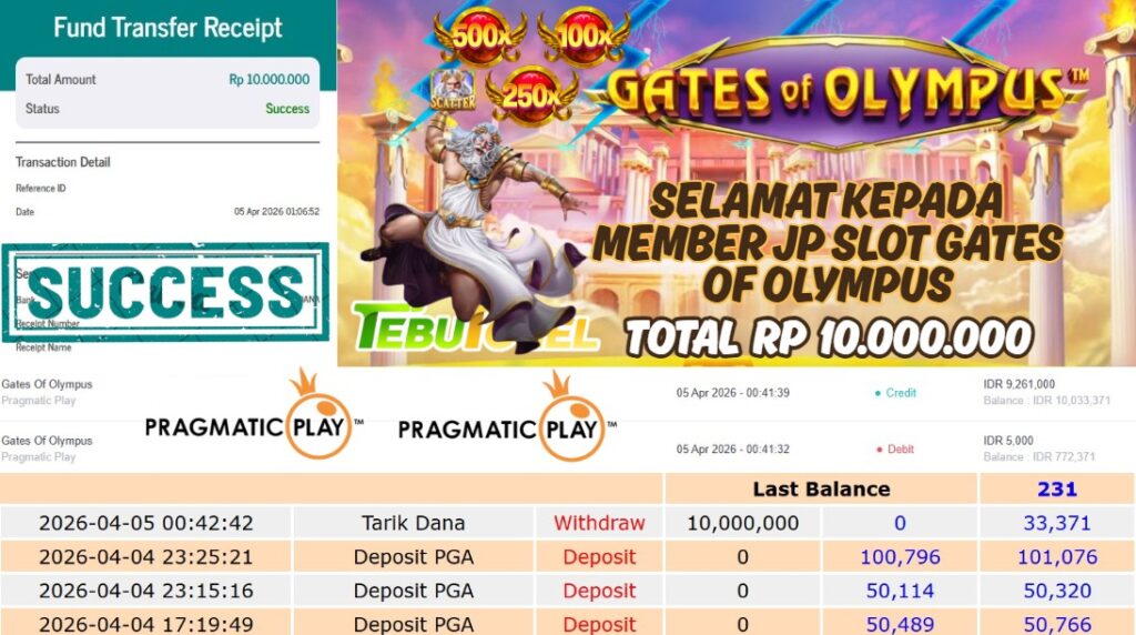 Selamat kepada User id : VIRA** telah berhasil mendapatkan kemenangan besar pada permainan SLOT GATES OF OLYMPUS dengan kemenangan … Baca selengkapnya...