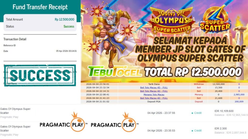 Selamat kepada User id : SHALOM** telah berhasil mendapatkan kemenangan besar pada permainan SLOT GATES OF OLYMPUS SUPER SCATTER … Baca selengkapnya...