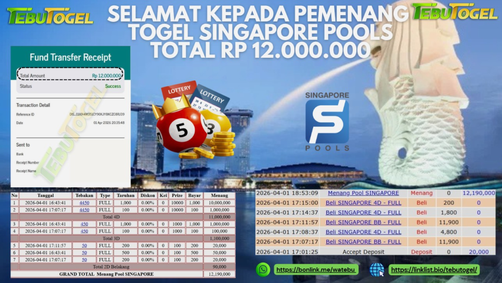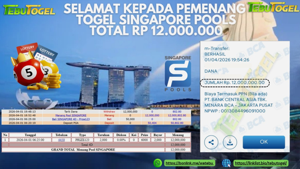 Selamat kepada User id : TAHUN** telah berhasil mendapatkan kemenangan besar pada permainan TOGEL SINGAPORE POOLS dengan kemenangan sebesar … Baca selengkapnya...