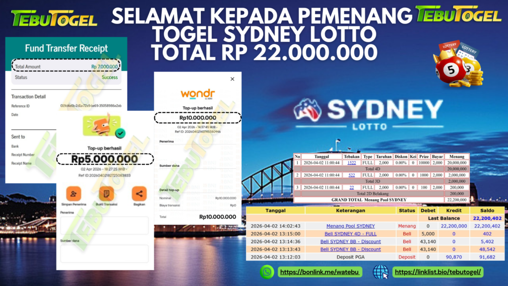 Selamat kepada User id : BUNA** telah berhasil mendapatkan kemenangan besar pada permainan TOGEL SYDNEY LOTTO dengan kemenangan sebesar … Baca selengkapnya...