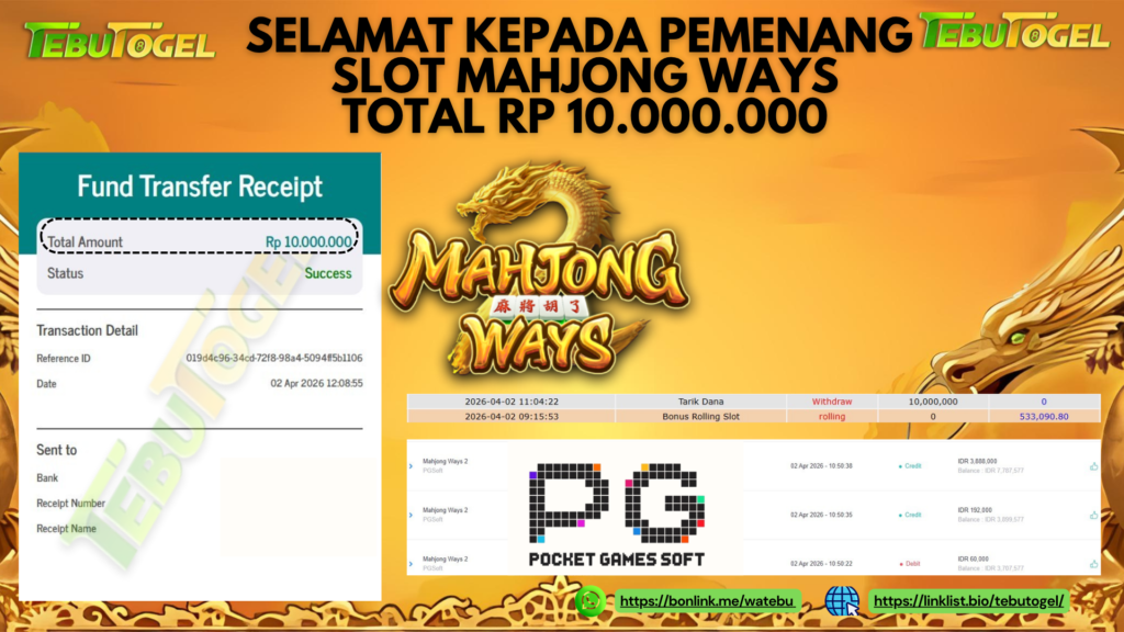 BUKTI JACKPOT SLOT MAHJONG WAYS Rp 10.000.000- LUNAS