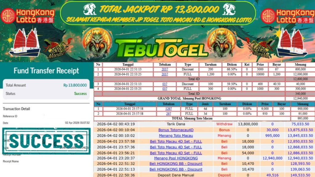 Selamat kepada User id : MAYANG** telah berhasil mendapatkan kemenangan besar pada permainan TOGEL TOTO MACAU 4D DAN HONGKONG … Baca selengkapnya...